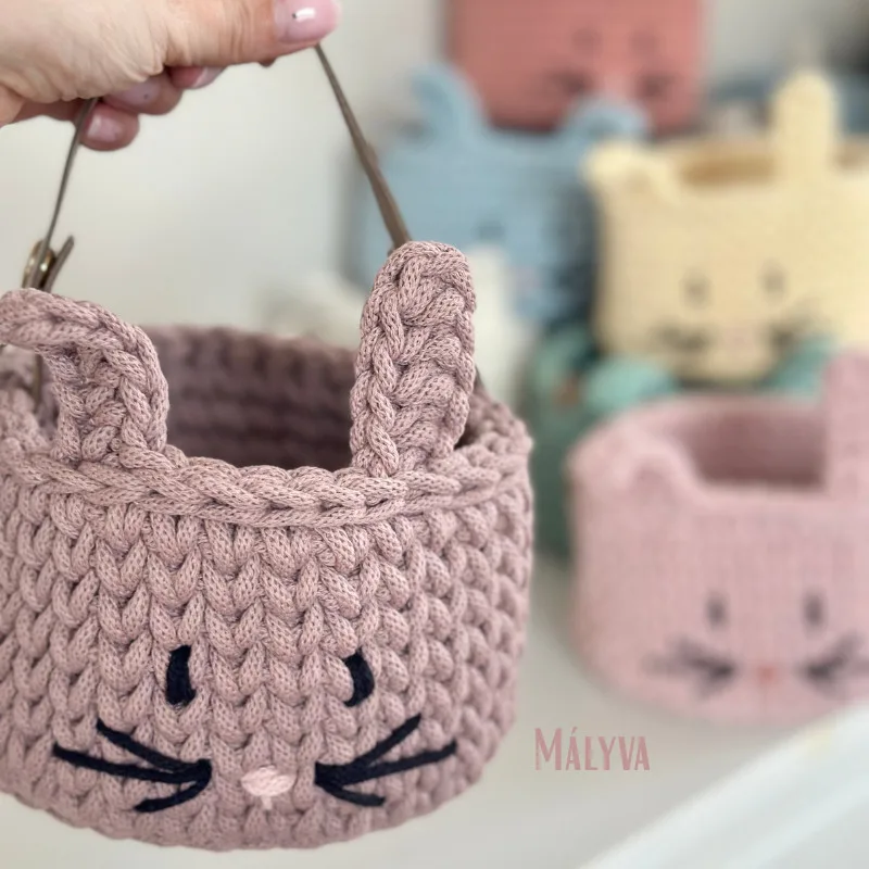 Miért környezettudatos döntés a nyuszis kosár beszerzése? Mert a kézzel horgolt kosár 100 % pamut OEKO TEX standard 100 újrahasznosított zsinórfonalból készül. Így sem az alapanyag gyártása, sem a kész termék gyártása során nem kell nagy energiamennyiséget felhasználni, ahogy vegyszereket sem.
